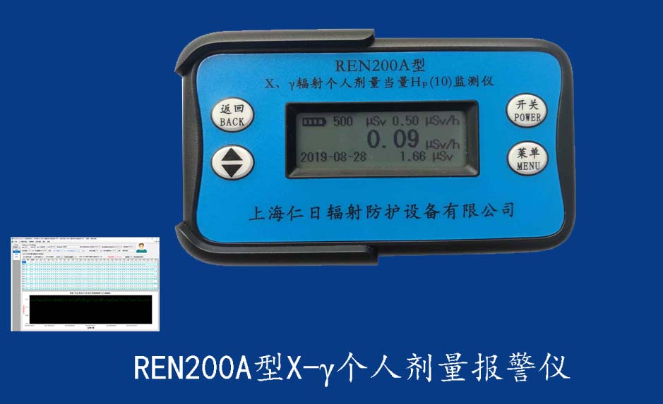 REN200A型X、γ輻射個人劑量當量HP(10)監(jiān)測儀(簡稱:個人劑量報警儀)內置高靈敏度蓋格計數管為探測器,主要用來監(jiān)測各種放射性工作場所的X、γ以及硬β射線的輻射,具有響應快,測量范圍寬的特點。能顯示工作場所的劑量當量率和累積劑量,更換電池時,日期及累積數據能永久保存。可選配RenRiPersonal個人劑量管理軟件,該軟件可存儲多個人的歷史數據,能記錄日累積、月累積、年累積、輻照時長、計算平均劑量率、扣除或不扣除本底輻射,且以文字和圖譜的方式展現數據。廣泛應用于核電站、加速器、鋼鐵、化工、同位素應用、工業X、γ無損探傷、放射醫療、鈷源治療、γ輻照、放射性實驗室、核設施周圍環(huán)境監(jiān)測等領域中的工作人員進行個人安全防護監(jiān)測及放射性提示。&nb